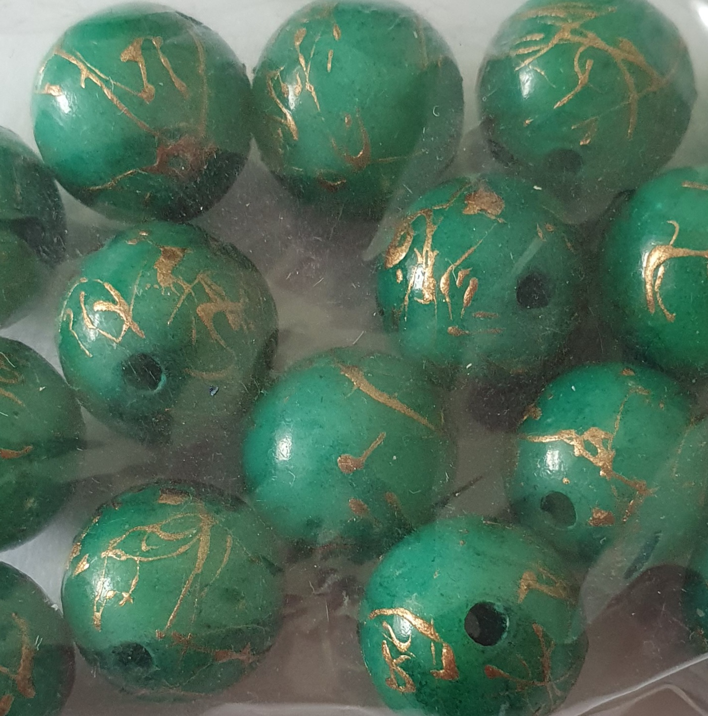 Wachsperle 10mm Grün mit Goldfaden 10St.