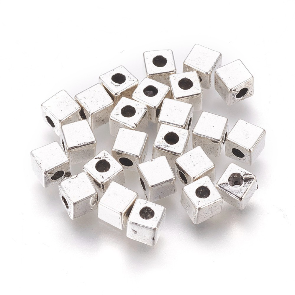 Metalltei Würfel 4x4mm Antik Silver 20 St.