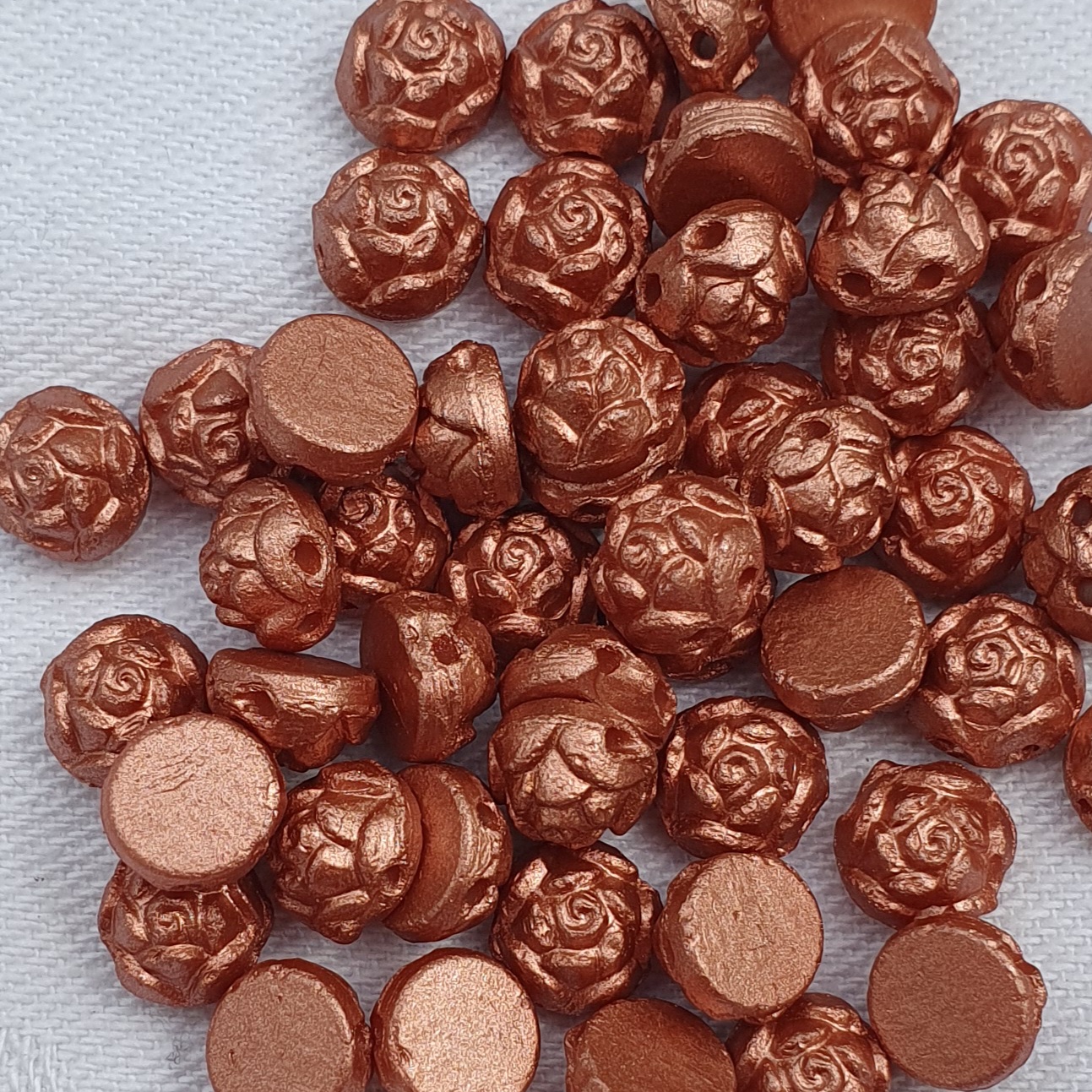 Glaswachsperle Rose, flach 2-Loch Copper 50 St