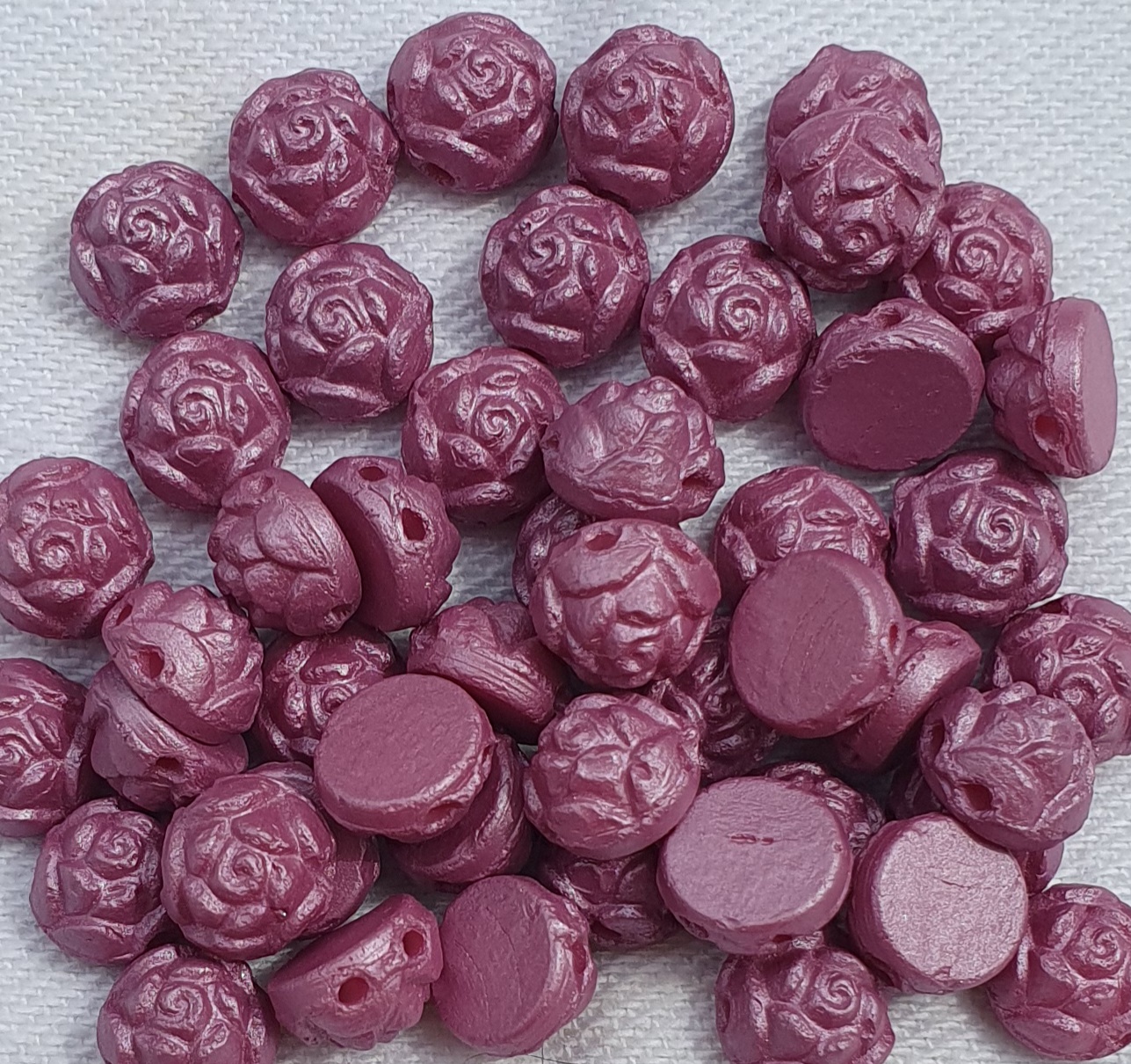 Glaswachsperle Rose flach 2-Loch Grape 50St